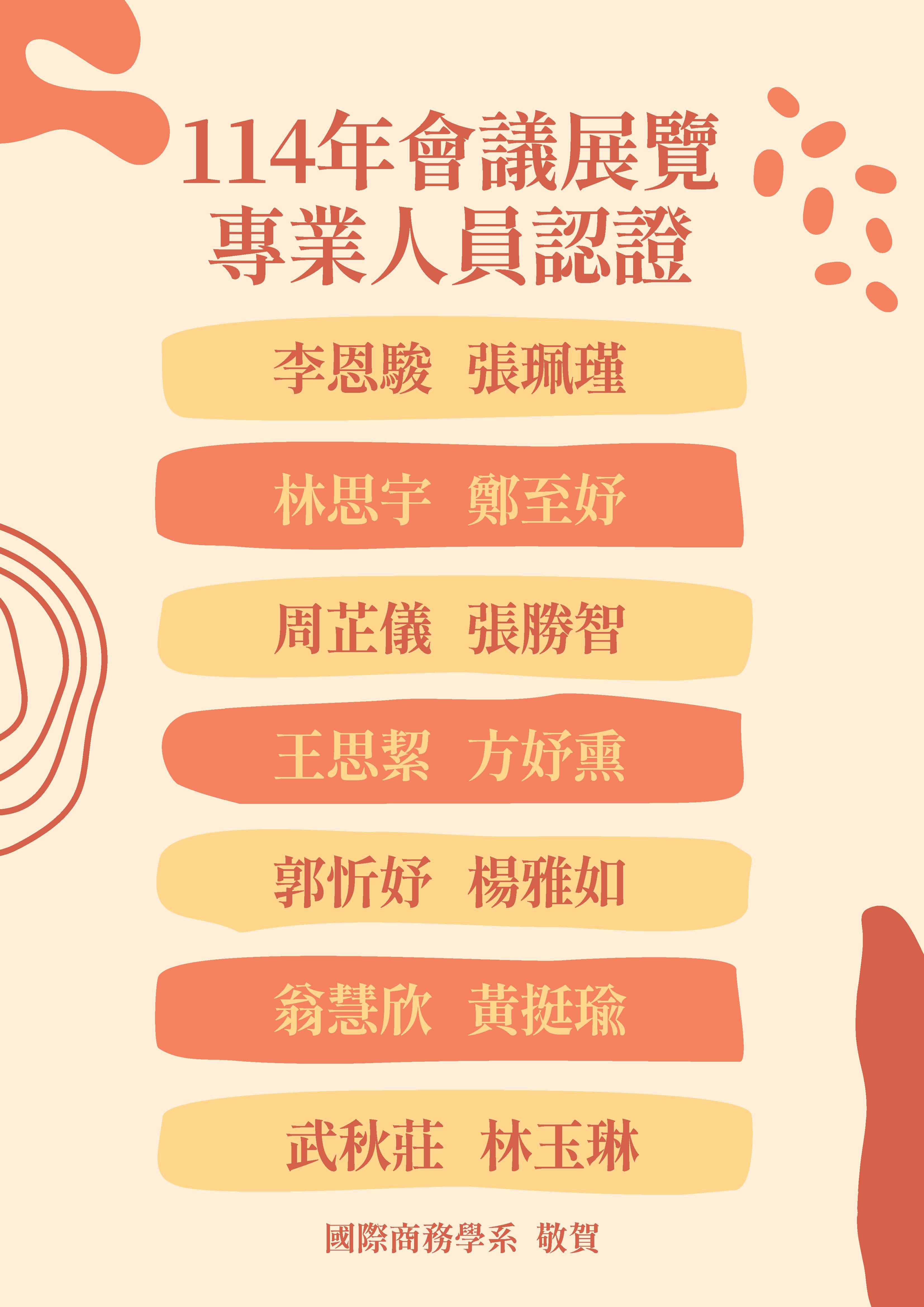 ● 本系113-1通過「會議展覽專業人員認證考試」名單。